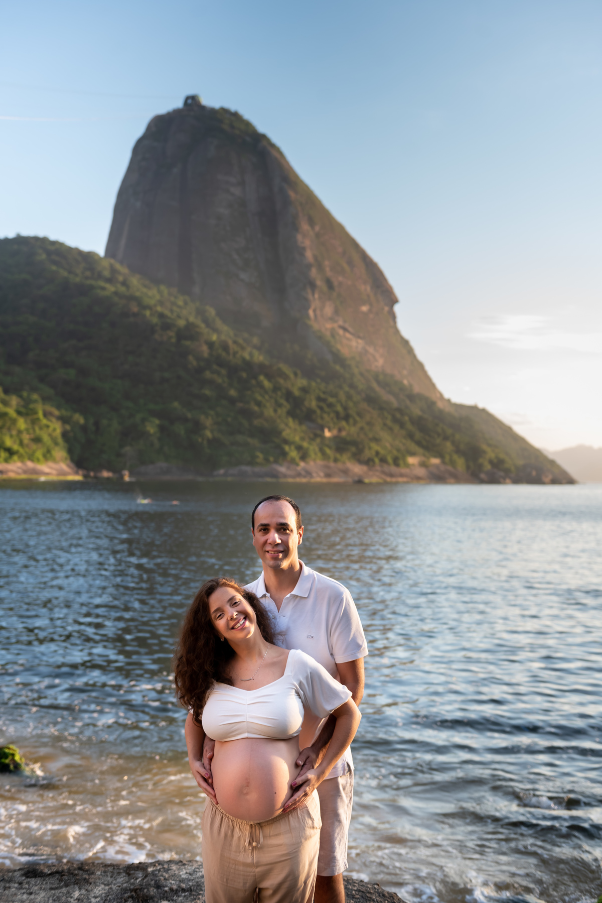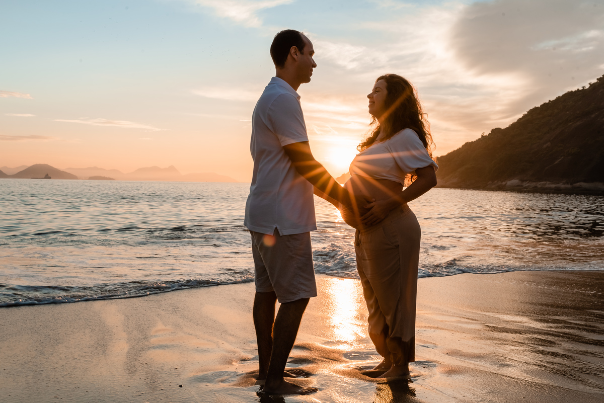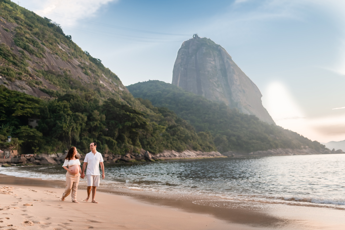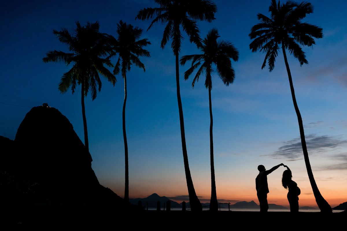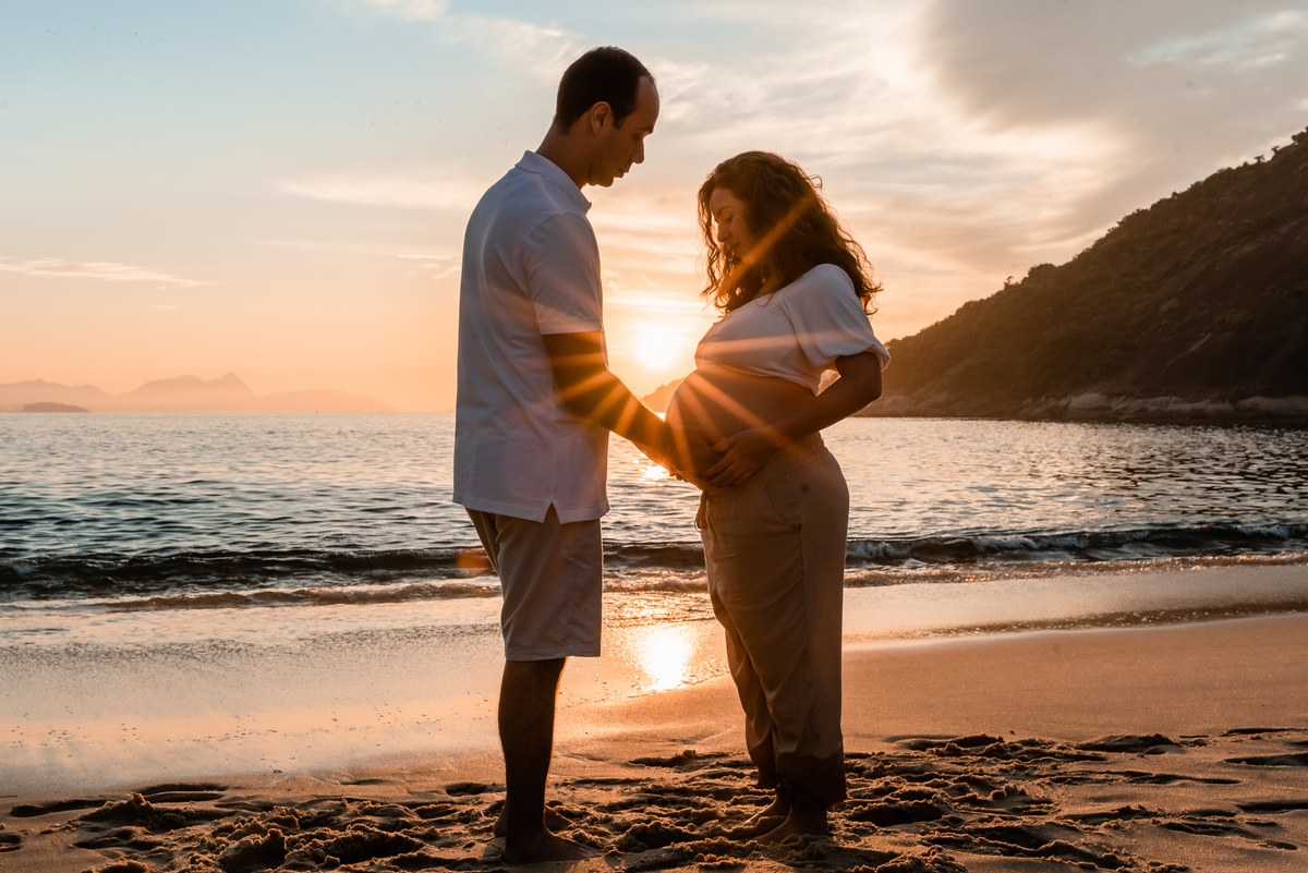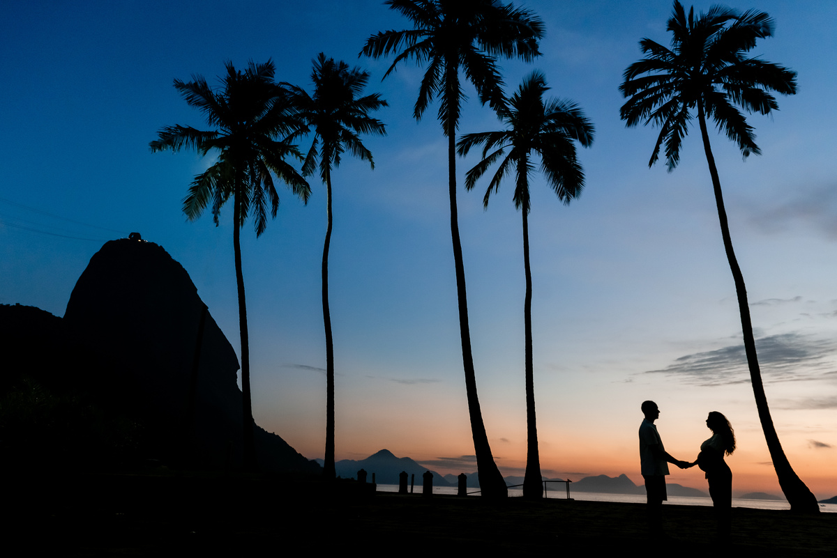 Que tal um nascer do sol na praia vermelha para realizar um ensaio lindo de gestante?
