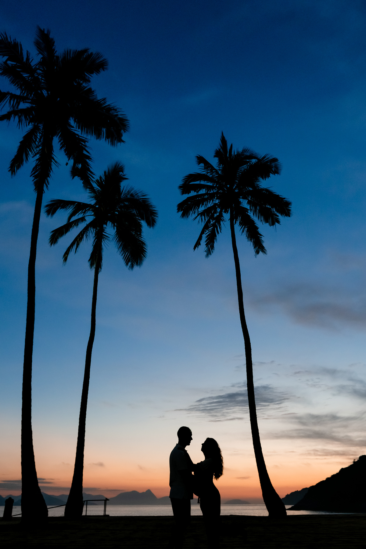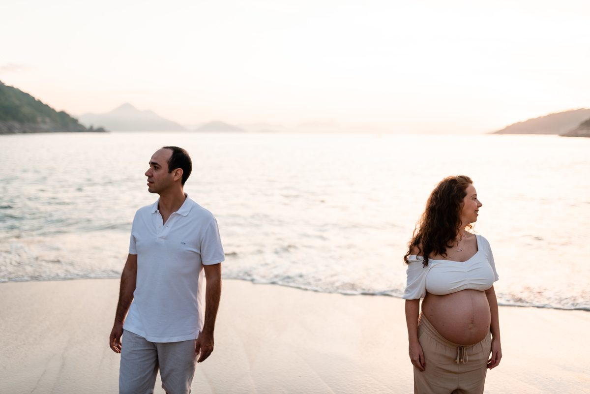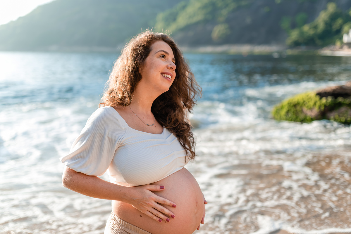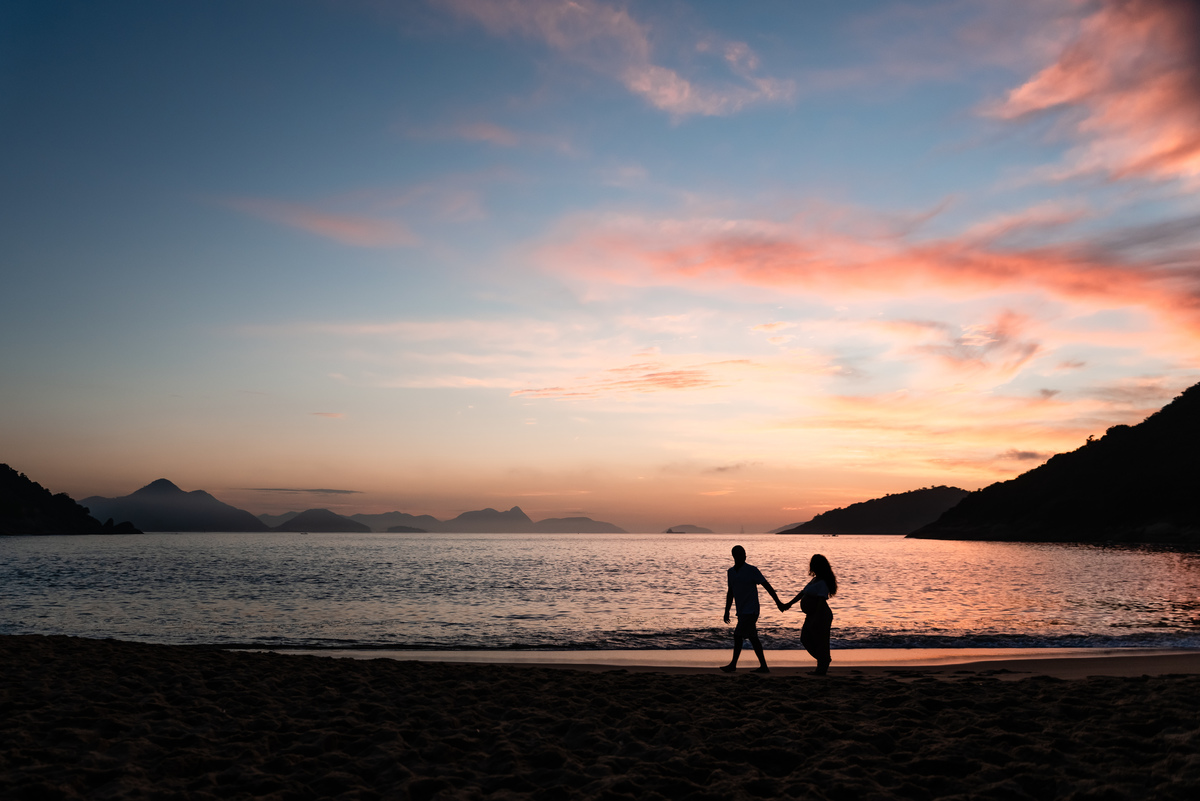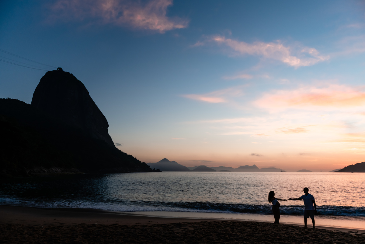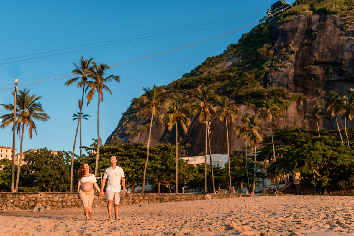 Que tal um nascer do sol na praia vermelha para realizar um ensaio lindo de gestante?