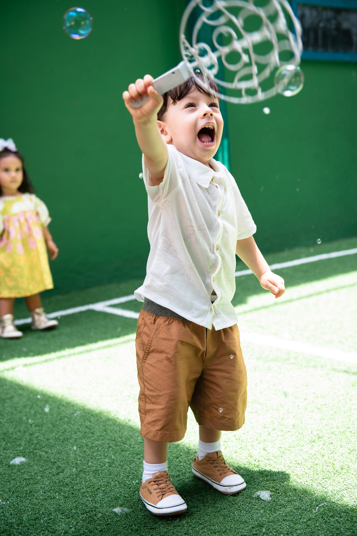 Com um buffet completo e delicioso e com uma animação que interage com as crianças do início ao fim e um espaço que eu amo fotografar!